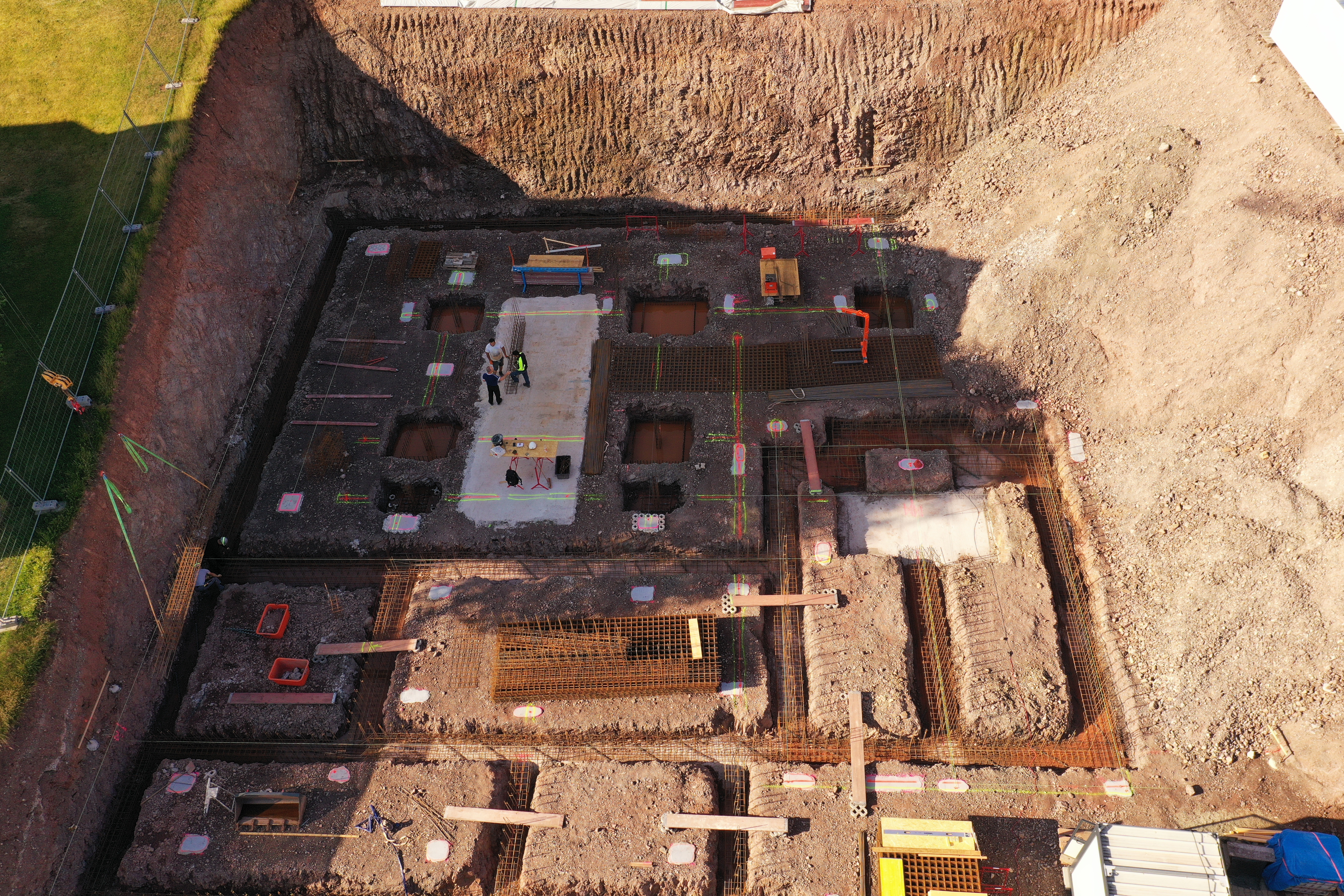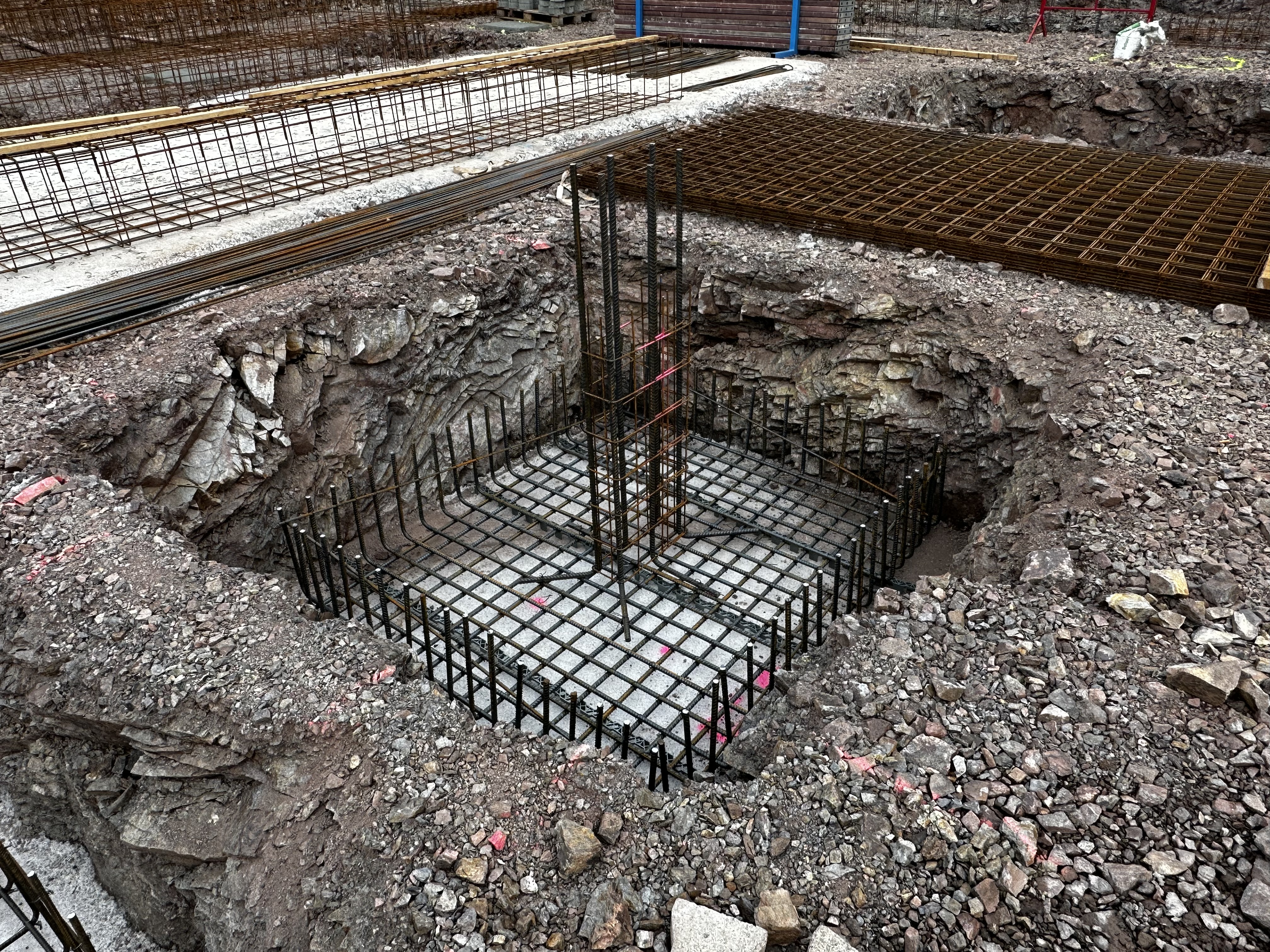 Beton- und Stahlbetonbau Benötigt wird Beton und Stahlbeton bei Bodenplatten, Weißer Wanne, Fundamenten, Decken, Stützwänden oder Pfeilern.
